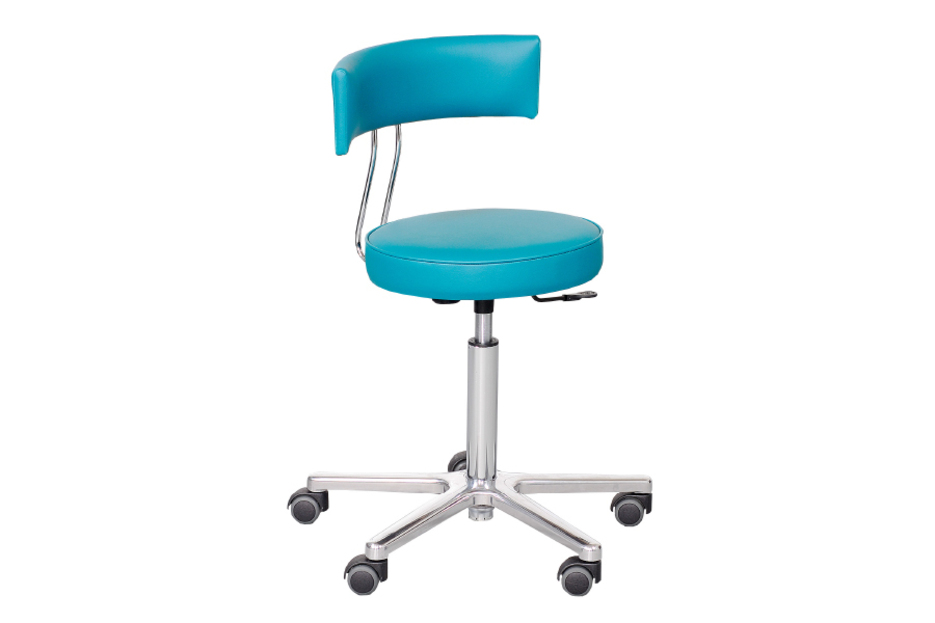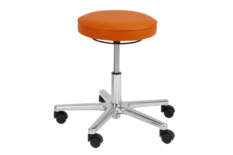Les chaises et tabourets médicaux pivotants sont livrés, en version standard, avec des roulettes autobloquantes dures (des roulettes souples ou des patins sont également disponibles sans supplément de prix).